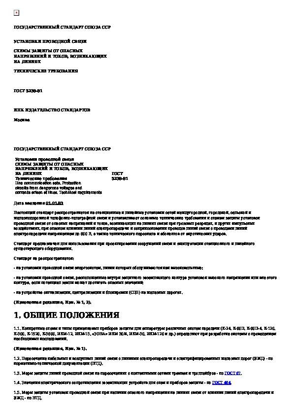 Наша цель состоит в том, чтобы предоставить вам быстрый доступ к содержанию документа Установки проводной связи. Схемы защиты от опасных напряжений и токов, возникающих на линиях. Технические требования.