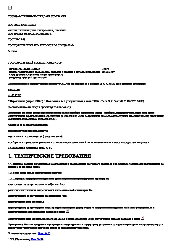 ГОСТ 23474-79: Приборы кабельные. Общие технические требования, правила приемки и методы испытаний
