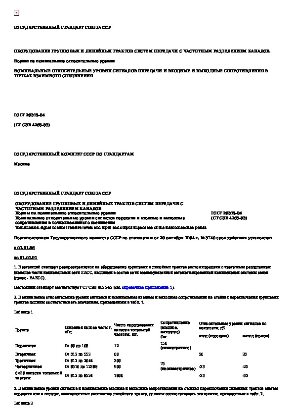 Оборудование групповых и линейных трактов систем передачи с частотным разделением каналов. Нормы на номинальные относительные ур