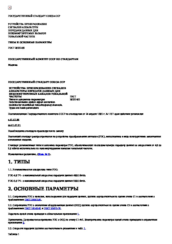 ГОСТ 26532-85: Устройства преобразования сигналов аппаратуры передачи данных для некоммутируемых каналов тональной частоты. Типы и основные па