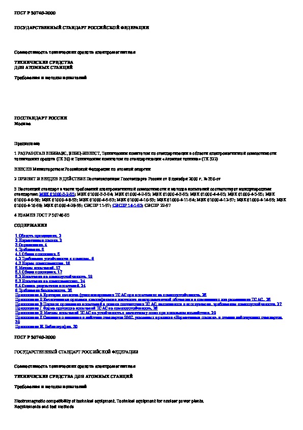 Наша цель состоит в том, чтобы предоставить вам быстрый доступ к содержанию документа Совместимость технических средств электромагнитная. Технические средства для атомных станций. Требования и методы испытаний.