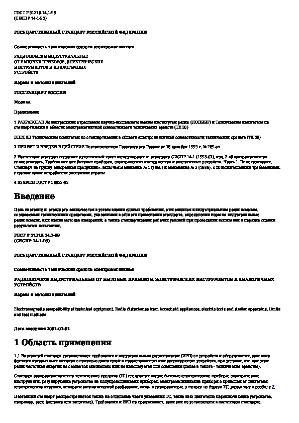 ГОСТ Р 51318.14.1-99: Совместимость технических средств электромагнитная. Радиопомехи индустриальные от бытовых приборов, электрических инструментов