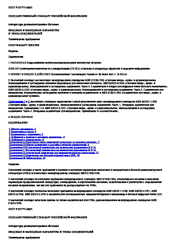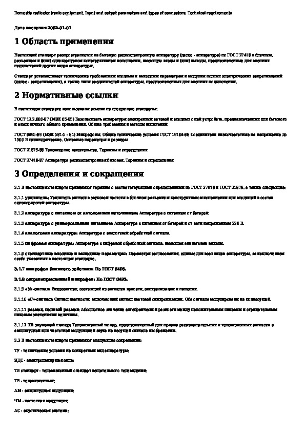 Наша цель состоит в том, чтобы предоставить вам быстрый доступ к содержанию документа Аппаратура радиоэлектронная бытовая. Входные и выходные параметры и типы соединителей. Технические требования.