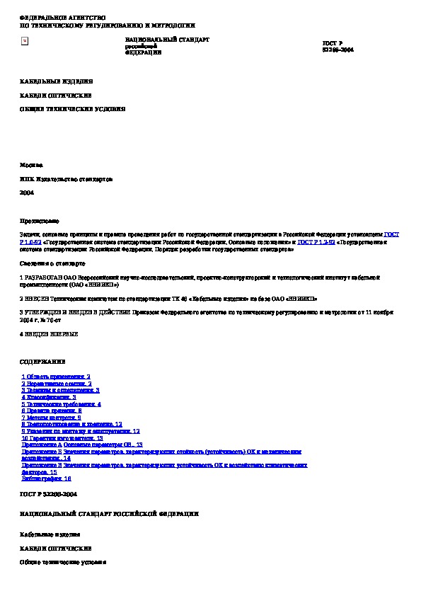 Наша цель состоит в том, чтобы предоставить вам быстрый доступ к содержанию документа Кабельные изделия. Кабели оптические. Общие технические условия.