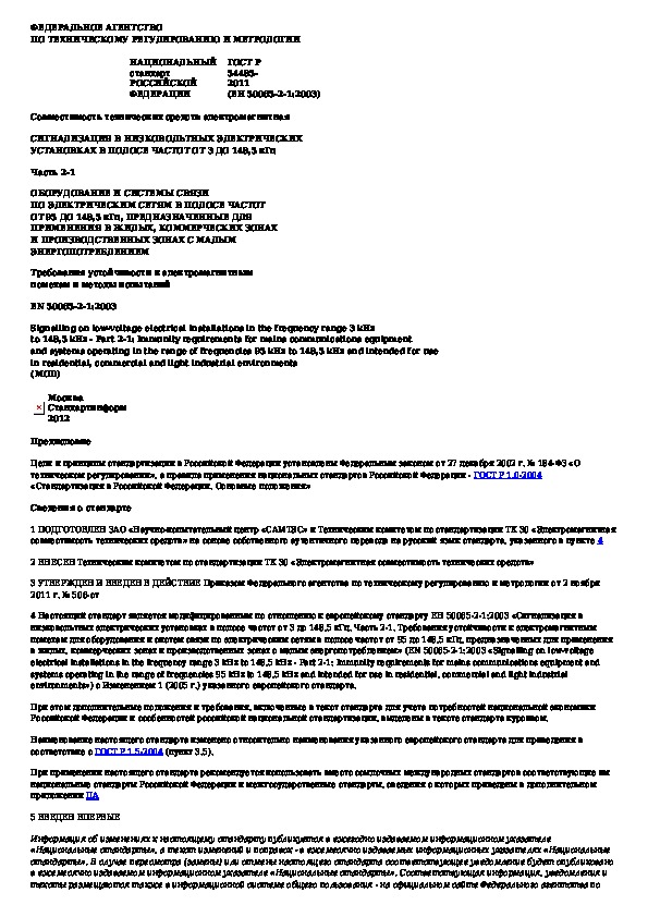 Наша цель состоит в том, чтобы предоставить вам быстрый доступ к содержанию документа Совместимость технических средств электромагнитная. Сигнализация в низковольтных электрических установках в полосе частот от 3 д.