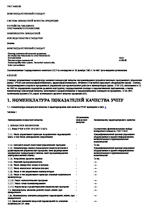 ГОСТ 4.405-85: Система показателей качества продукции. Устройства числового программного управления. Номенклатура показателей
