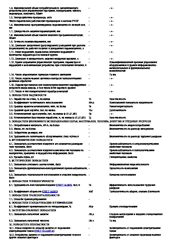 Система показателей качества продукции. Устройства числового программного управления. Номенклатура показателей