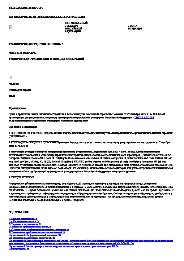 Наша цель состоит в том, чтобы предоставить вам быстрый доступ к содержанию документа Транспортные средства колесные. Массы и размеры. Технические требования и методы испытаний.