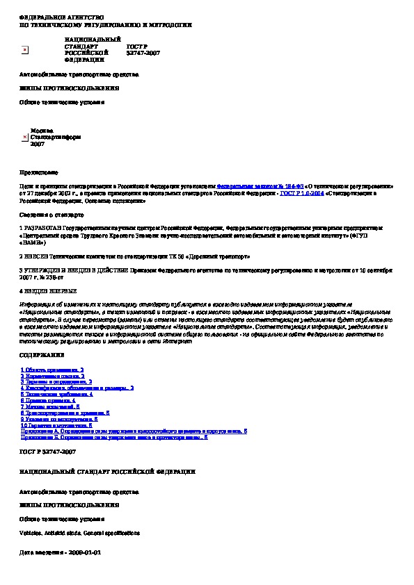 Наша цель состоит в том, чтобы предоставить вам быстрый доступ к содержанию документа Автомобильные транспортные средства. Шипы противоскольжения. Общие технические условия.