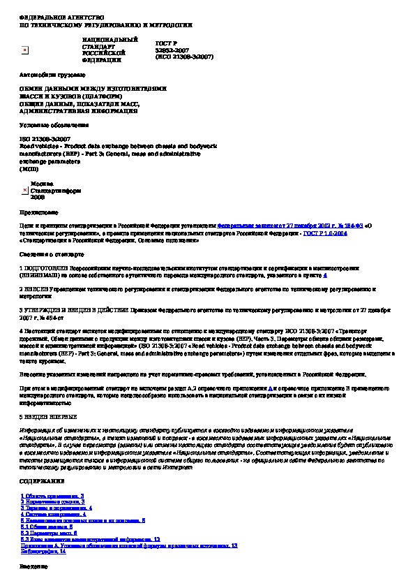 Наша цель состоит в том, чтобы предоставить вам быстрый доступ к содержанию документа Автомобили грузовые. Обмен данными между изготовителями шасси и кузовов (платформ). Общие данные, показатели масс, административна.