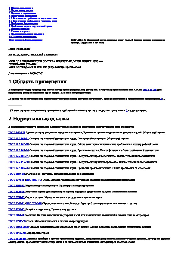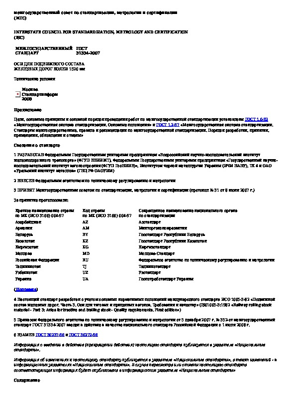 ГОСТ 31334-2007: Оси для подвижного состава железных дорог колеи 1520 мм. Технические условия