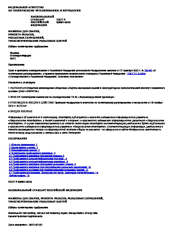 Наша цель состоит в том, чтобы предоставить вам быстрый доступ к содержанию документа Машины для сварки, ремонта рельсов, рельсовых скреплений, транспортирования рельсовых плетей. Общие технические требования.