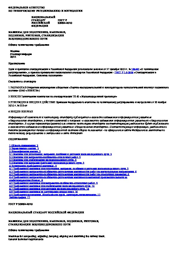 Наша цель состоит в том, чтобы предоставить вам быстрый доступ к содержанию документа Машины для уплотнения, выправки, подбивки, рихтовки, стабилизации железнодорожного пути. Общие технические требования.