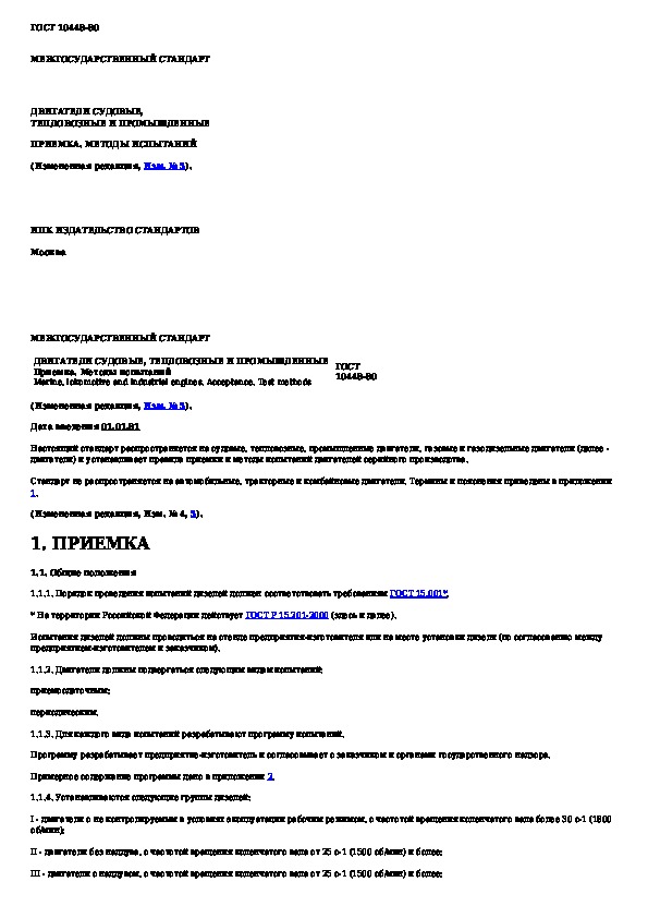 ГОСТ 10448-80: Двигатели судовые, тепловозные и промышленные. Приемка. Методы испытаний