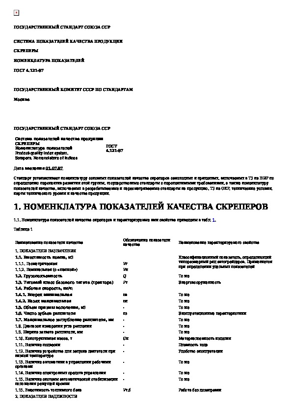 ГОСТ 4.121-87: Система показателей качества продукции. Скреперы. Номенклатура показателей