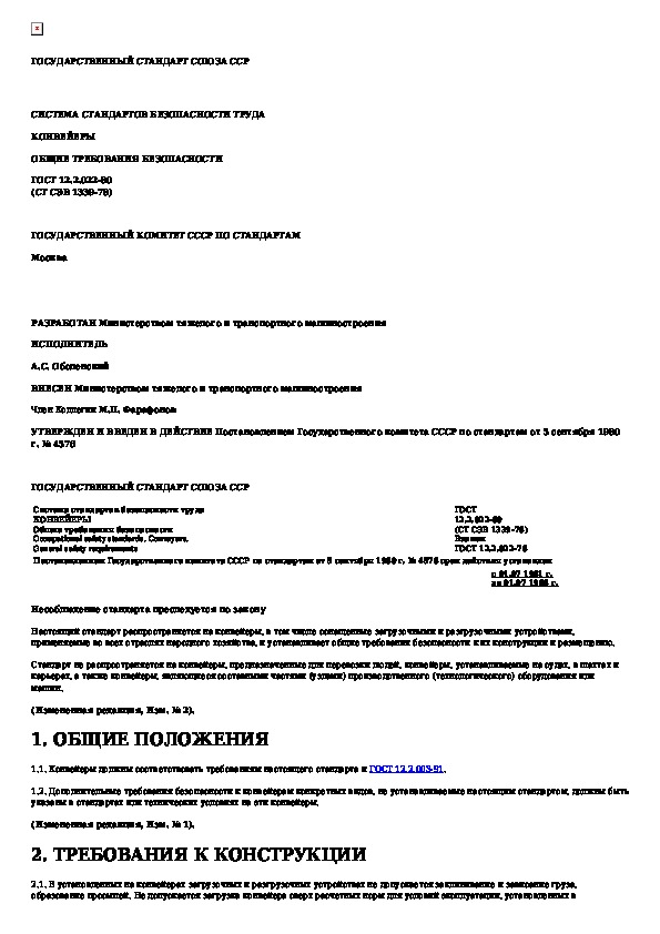 Наша цель состоит в том, чтобы предоставить вам быстрый доступ к содержанию документа Система стандартов безопасности труда. Конвейеры. Общие требования безопасности.