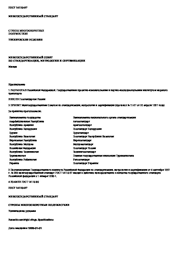 ГОСТ 14110-97: Стропы многооборотные полужесткие. Технические условия
