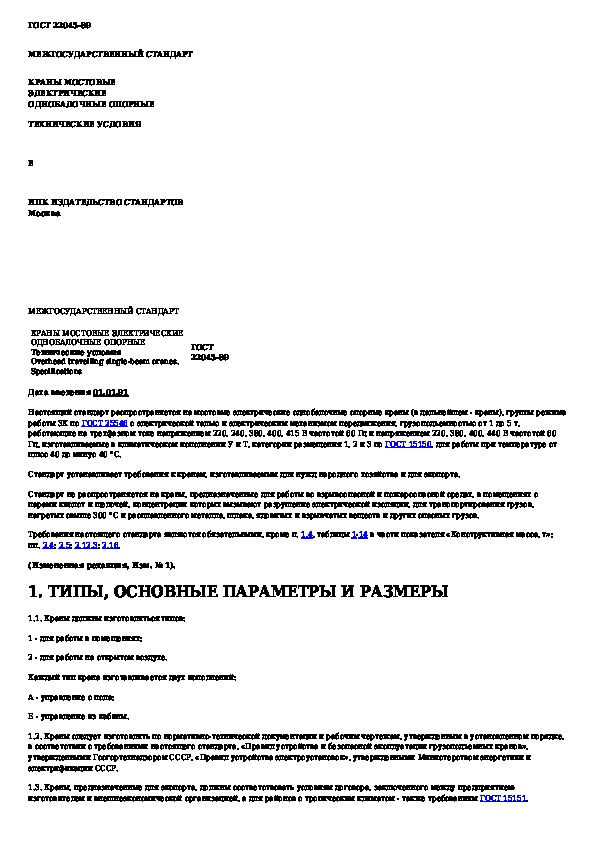 ГОСТ 22045-89: Краны мостовые электрические однобалочные опорные. Технические условия