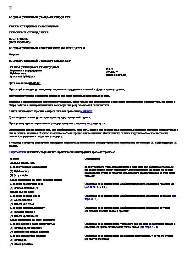 Наша цель состоит в том, чтобы предоставить вам быстрый доступ к содержанию документа Краны стреловые самоходные. Термины и определения.
