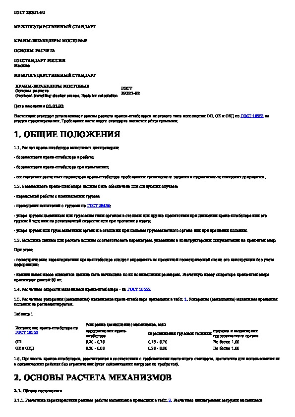 ГОСТ 29321-92: Краны-штабелеры мостовые. Основы расчета