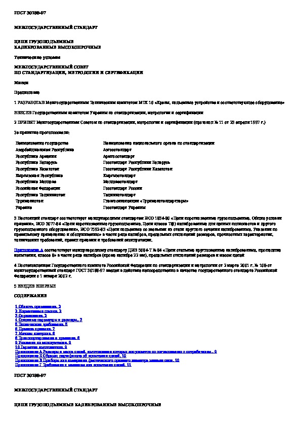 ГОСТ 30188-97: Цепи грузоподъемные калиброванные высокопрочные. Технические условия