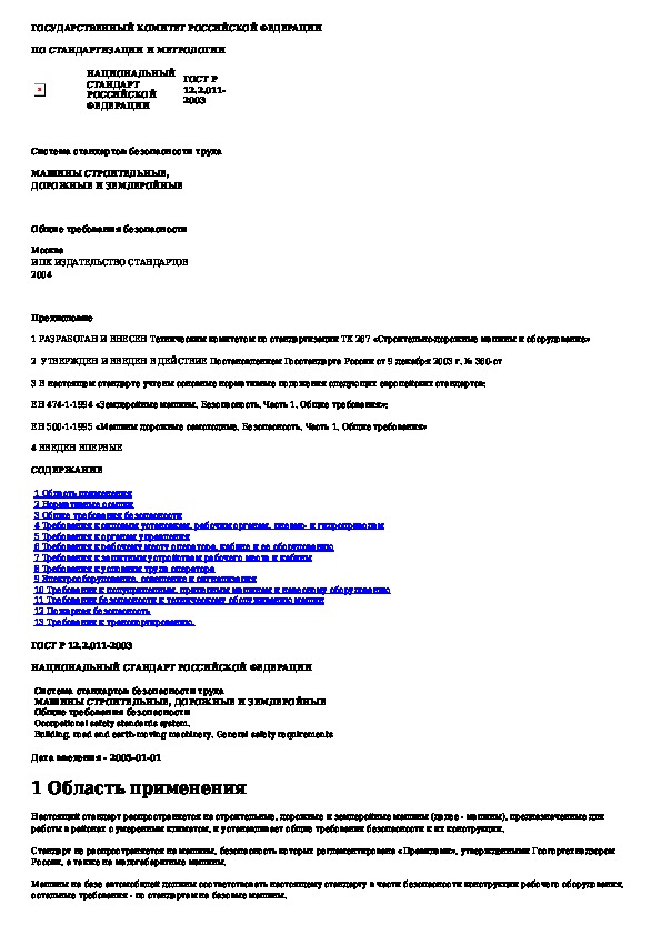 Наша цель состоит в том, чтобы предоставить вам быстрый доступ к содержанию документа Система стандартов безопасности труда. Машины строительные, дорожные и землеройные. Общие требования безопасности.