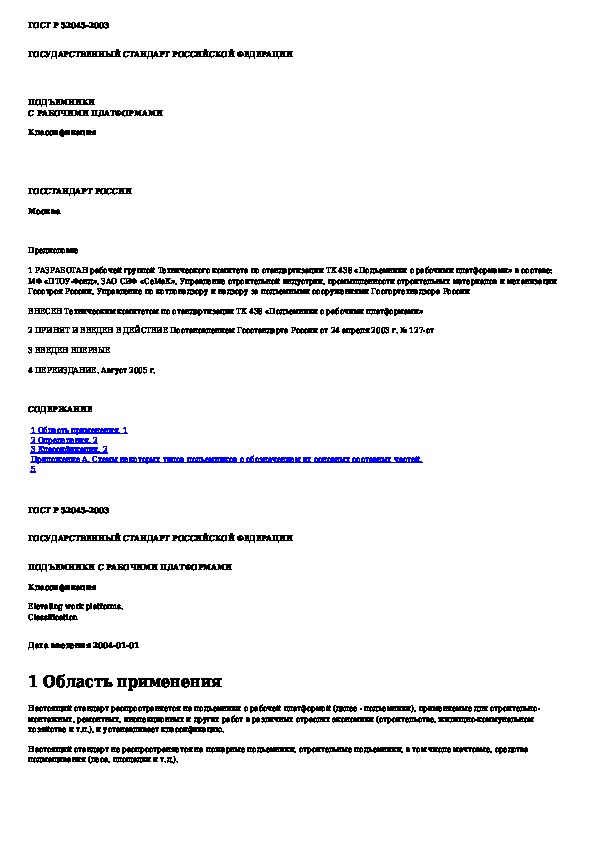 Наша цель состоит в том, чтобы предоставить вам быстрый доступ к содержанию документа Подъемники с рабочими платформами. Классификация.