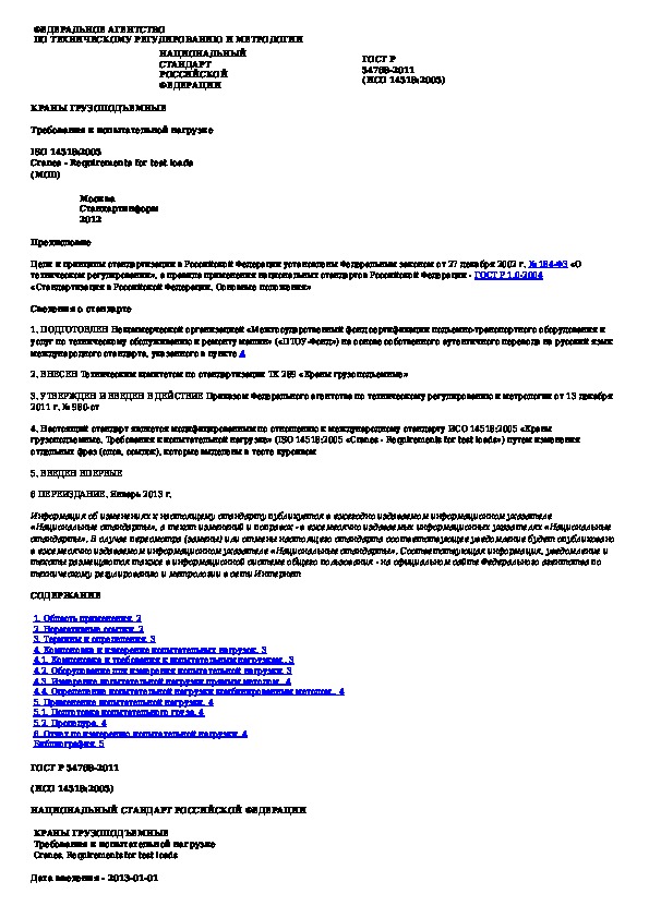 Наша цель состоит в том, чтобы предоставить вам быстрый доступ к содержанию документа Краны грузоподъемные. Требования к испытательной нагрузке.