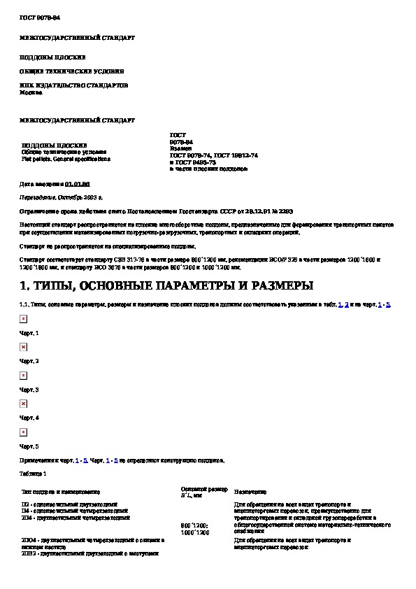ГОСТ 9078-84: Поддоны плоские. Общие технические условия