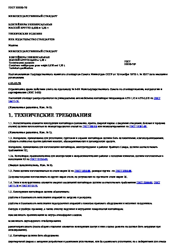 Наша цель состоит в том, чтобы предоставить вам быстрый доступ к содержанию документа Контейнеры универсальные массой брутто 0,625 и 1,25 т. Технические условия.