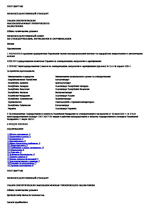Наша цель состоит в том, чтобы предоставить вам быстрый доступ к содержанию документа Ткани синтетические высокообъемные технического назначения. Общие технические условия.