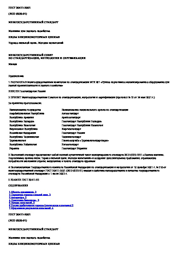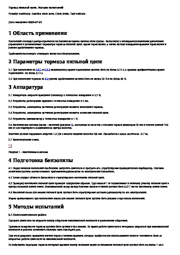 • Просмотр в полноэкранном режиме - легко просмотреть документ Машины для лесного хозяйства. Пилы бензиномоторные цепные. Тормоз пильной цепи. Методы испытаний (без загрузки его на свой компьютер).