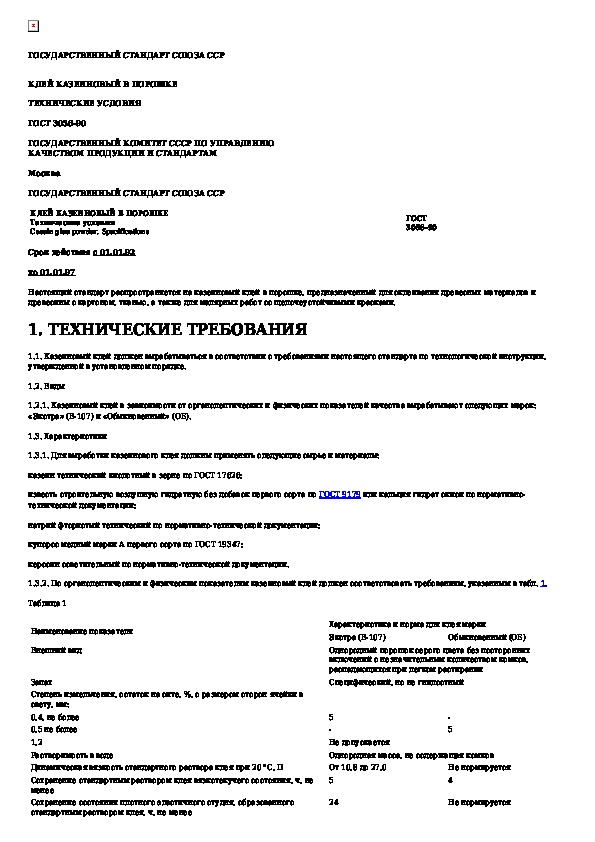 ГОСТ 3056-90: Клей казеиновый в порошке. Технические условия