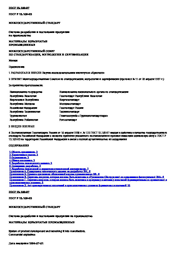ГОСТ 15.109-97: Система разработки и постановки продукции на производство. Материалы взрывчатые промышленные