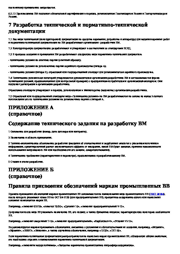 Система разработки и постановки продукции на производство. Материалы взрывчатые промышленные