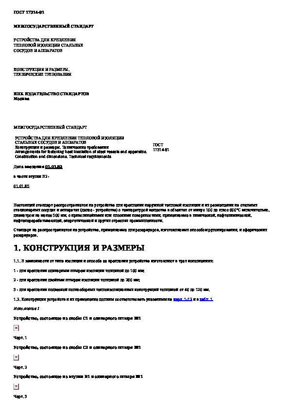 ГОСТ 17314-81: Устройства для крепления тепловой изоляции стальных сосудов и аппаратов. Конструкция и размеры. Технические требования