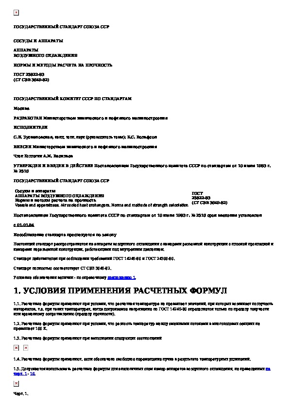 ГОСТ 25822-83: Сосуды и аппараты. Аппараты воздушного охлаждения. Нормы и методы расчета на прочность
