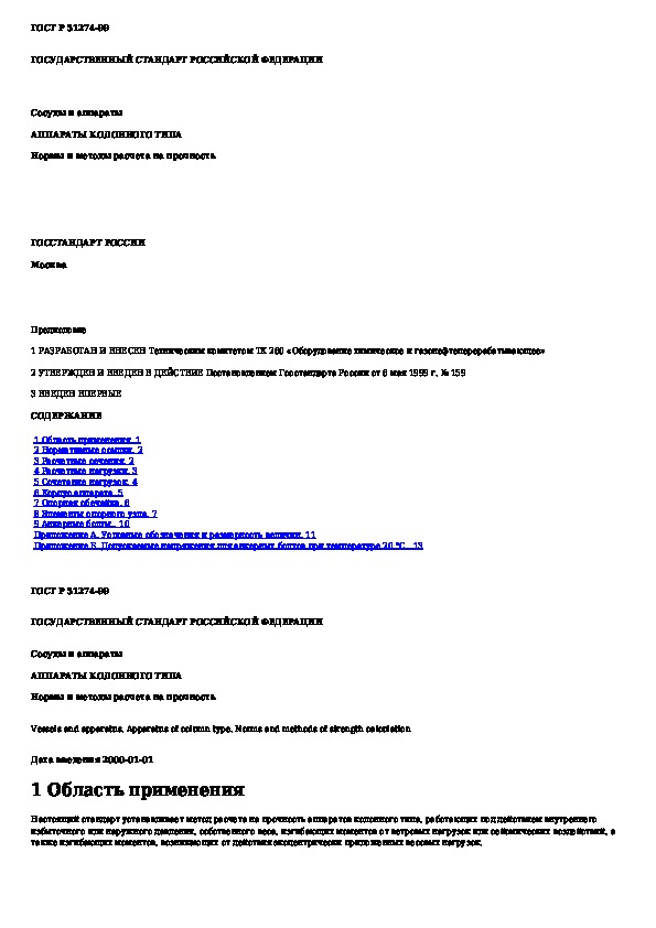 ГОСТ Р 51274-99: Сосуды и аппараты. Аппараты колонного типа. Нормы и методы расчета на прочность