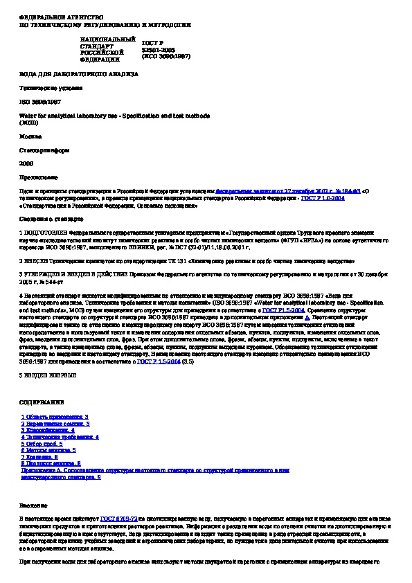ГОСТ Р 52501-2005: Вода для лабораторного анализа. Технические условия