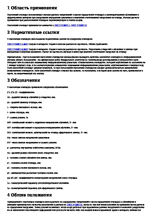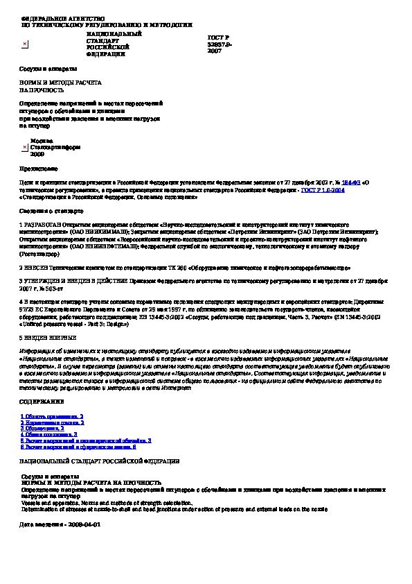 ГОСТ Р 52857.9-2007: Сосуды и аппараты. Нормы и методы расчета на прочность. Определение напряжений в местах пересечений штуцеров с обечайками и днищам