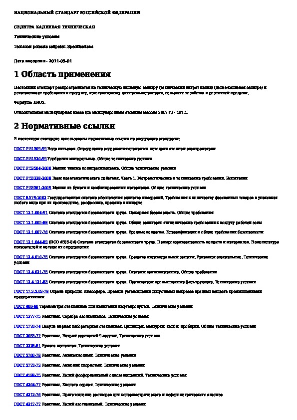 • Просмотр в полноэкранном режиме - легко просмотреть документ Селитра калиевая техническая. Технические условия (без загрузки его на свой компьютер).