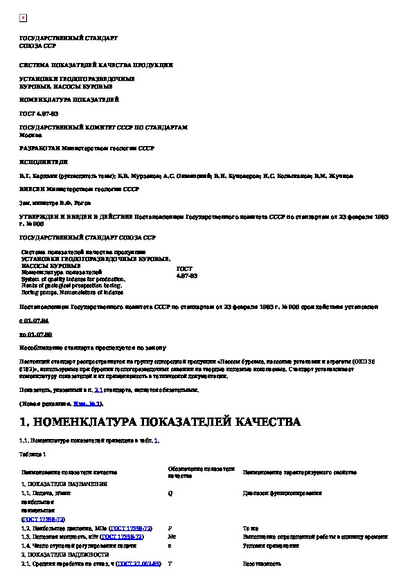 Наша цель состоит в том, чтобы предоставить вам быстрый доступ к содержанию документа Система показателей качества продукции. Установки геолого-разведочные буровые. Насосы буровые. Номенклатура показателей.