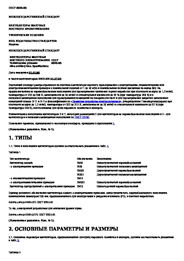 ГОСТ 6625-85: Вентиляторы шахтные местного проветривания. Технические условия