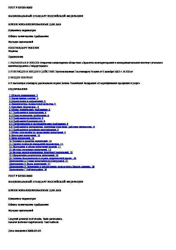 Наша цель состоит в том, чтобы предоставить вам быстрый доступ к содержанию документа Крепи механизированные для лав. Основные параметры. Общие технические требования. Методы испытаний.