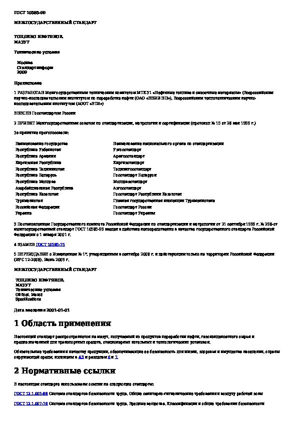 ГОСТ 10585-99: Топливо нефтяное. Мазут. Технические условия