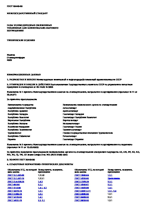 ГОСТ 20448-90: Газы углеводородные сжиженные топливные для коммунально-бытового потребления. Технические условия