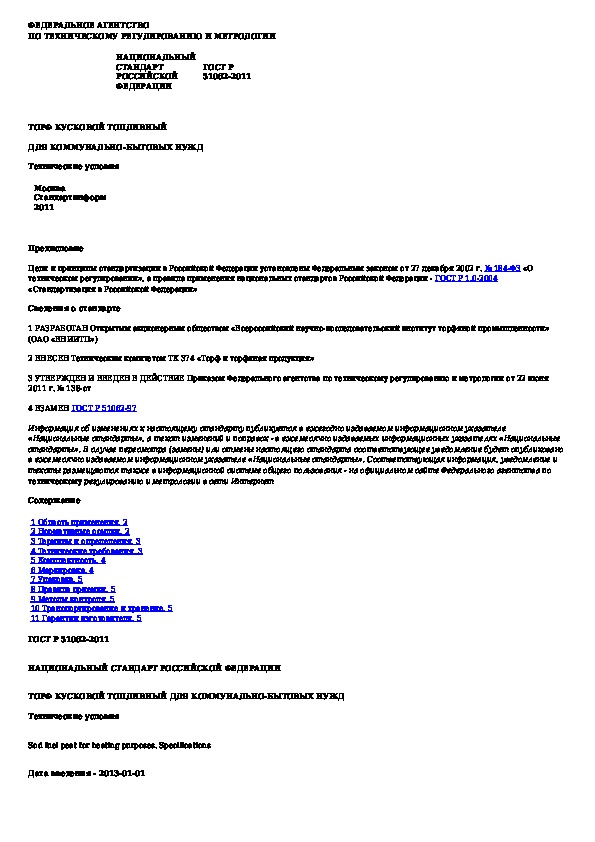 Наша цель состоит в том, чтобы предоставить вам быстрый доступ к содержанию документа Торф кусковой топливный для коммунально-бытовых нужд. Технические условия.