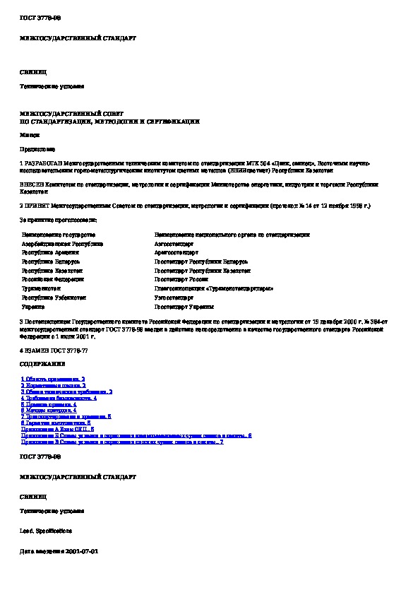 Наша цель состоит в том, чтобы предоставить вам быстрый доступ к содержанию документа Свинец. Технические условия.