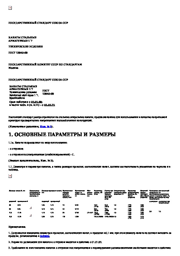 ГОСТ 13840-68: Канаты стальные арматурные 1х7. Технические условия