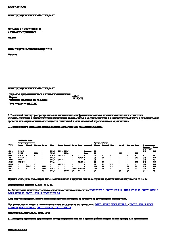 ГОСТ 14113-78: Сплавы алюминиевые антифрикционные. Марки